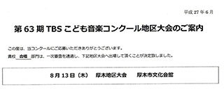 今年の目標は、NHK全国音楽コンクールの予選出場、TBSこども音楽コンクールの本戦出場です。先日、TBSコンクールの一次審査(CDを送ります)へ応募し、結果が郵送されてきました。その結果、めでたく、創部2年目で、初の本選出場となりました。4月から、クラブの時間と、週1、2回昼休みの15分間練習にも、集まれる子どもたちで真剣に取り組んできた努力の成果です。演奏曲は「友だちだから」。友だちへの思いを、明るいテンポで、元気なカリタスの子どもたちが歌います。