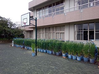 1学期に育て始めたバケツ稲。土作りから、発芽、苗植えと、手塩にかけて育て始め、夏には、子どもたちが、毎日のように水替えをしてくれました。