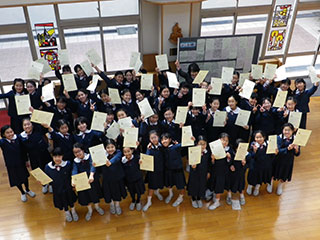 2015年度秋季仏検5級の結果が届きました。今年は、6年生50名が受験し、50名全員が合格するという歴史的快挙となりました。チームカリタスとして、みんなで一緒に勉強し、みんなで一緒に合格したこの達成感と喜びはひとしおです。フランス語も英語も勉強しているからこそ、今までにない高得点(全国平均78点、カリタス平均81点)で合格できたのだと思います。外国語が大好きで、得意な子どもたちがどんどん育っています。