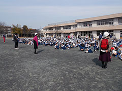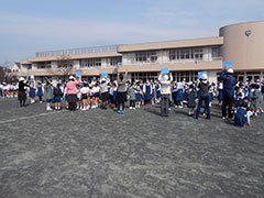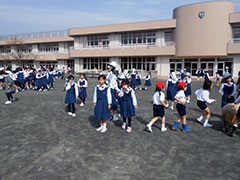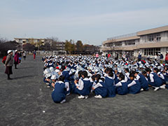 4/24(金)に今年度初めての避難訓練を行ったときは、校舎からの全校児童避難完了に要した時間が「2分44秒」でした。このタイムが、年度の最後の訓練では「2分5秒」で避難が完了できるまでになりました。また、校庭避難後の児童点呼完了までに要した時間は、4月では「5分30秒」でした。それが、今回は「3分48秒」だったのです。