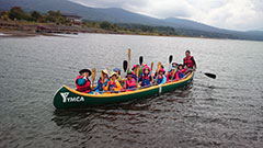 今日から3年生は、山中湖YMCAで二泊三日の宿泊活動に来ています。初日の今日は、施設の目の前の山中湖でビックカヌーに挑戦!