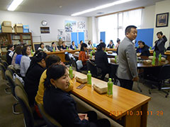 参観後は、会議室にてモンゴルの先生方と本学園の幼稚園園長、小学校校長、外国語の教員とで、それぞれの国の教育の特徴やカリタス学園の印象について昼食を取りながら和やかに意見交換が行われました。
