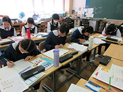 カリタス小学校を準会場にしてDELF Prim A1試験が実施されました。横浜日仏学院から5名の試験官が来校、午前中は聞き取り・読み取り・作文の筆記試験、午後は一人6~7分の面接が行われました。10名の講師による5回の土曜講座とは別に、昼休み自主練や作文特訓など懸命に準備してきたので、緊張しながらも「楽しかった~~!」「もっと話したかったのに」「これからも勉強しなきゃ」と誰もが満足した様子でした。試験官からは、「明るく一生懸命に話そうとする姿が子どもらしくてよかった」「発音がきれいで話していてとても気持ちよかった」「ただ、単語の羅列で終わり、文になっていない生徒がいたのが惜しい」などの感想をいただきました。「面接って、覚えたことじゃないことを話さなきゃいけないんだ!」と笑いながら話す子どもの声を聞き、この経験をはずみにして、中学での英仏語学習により積極的に取り組んで欲しいと強く思いました。