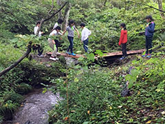 食後は、ホテル前広場、沢の森で自由遊びをしました。