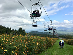 黒姫スキー場に着くと、たくさんのダリアやコスモスがお出迎え。リフトに乗って、花の上の空中散歩を楽しみました。リフトが初めてで不安そうだった子も「また乗りたい!」と、とても気に入っていました。