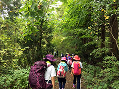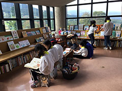 野尻湖を望みながらお昼を食べた後は、森を抜けて、黒姫童話館に行きました。信州の民話を聞いたり、いわさきちひろさんの山荘を見たりしました。見学を終えると、童話館の前の芝生で、転がったり、駆け回ったり。疲れを見せず、思い切り体を動かして遊びました。
