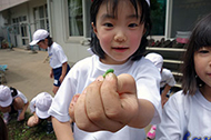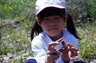 4年2組は今、自然遊びの研究を進めています。自然遊びとは、校庭や公園などにある草や花、石、砂等を使った遊びです。ボールやゲームなど「作られたもの」ではなく、自然の恵みを生かして遊びを考える事を楽しんでいます。