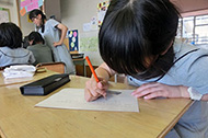 また、活動の見通しを紙にまとめる場面では、「・・・・・・」一人で黙々と書き続け、用紙に書いて提案する子もいます。想いが強いことの表れです。「あ、こうしたらいいんじゃない?」「それ、いいね!」友達と話し合うことで、テーマの魅力を探っていくグループもあります。会話が議論を深めてくれます。