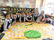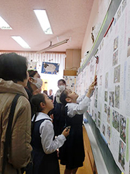 学習発表会では、多摩川探検のこと、くるみのこと、クロちゃんのこと、2組のことなど1年間やってきたことを発表しました。みんなでアイデアを出し合って…アルバムやクロちゃんすごろくを作って自分たちの活動を紹介したり、くるみ工作コーナーを作って多摩川のくるみを紹介したりすることができました。お客さんに説明をするのは、緊張して難しかったけれど、説明しているうちにだんだん楽しくなりました。