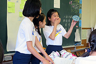 2月16日、1年間の学びを伝える学習発表会では、文字を追って伝えたり、保存してきたラーメンの実物を比較しながら説明したり、「ピヨ軒」でラーメンの試食をふるまったり…カップヌードルミュージアムのように洗練された「白」で統一された教室内で、一人ひとりが各々の場所で大活躍でした。これまで真剣に頑張ってきたので、伝えたい気持ちを強くもっていたのだと思います。