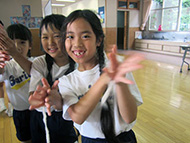 同時に、スピンドルという道具を手作りして毛糸を紡いだり、石けん水でフェルトコースターを作ったり、羊毛が糸やフェルトに変化することも経験してきました。休み時間にはニードル針をちくちく刺してフェルトマスコットを作って遊んだり、毛糸を指やかぎ針で編むことも大流行です。