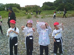 多摩川探検に向けて、各クラス、グループに分かれて、何をしようか、何を持っていくか、わくわくしながら計画を立て、この日を楽しみにしていました。お天気にも恵まれて、子どもたちは朝から元気いっぱい!