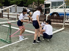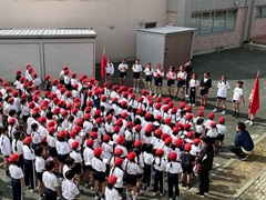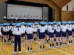 今週末のアスレチックフェスティバルに向けて、応援合戦の練習を行いました。