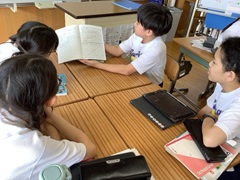 今回は4~5人グループでのミニ発表会です。どの班も嬉しそうに皆に伝える姿、真剣に聞き入る姿がありました。発表後はそれについて質問をしあったり、感想を述べあったりしました。