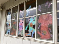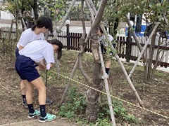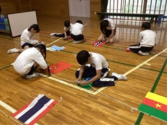 アスフェス本番を前に、5、6年生で入場門、万国旗、テント、杭打ちなど、会場の準備をしました。