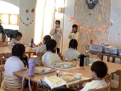 3年生の一クラスがペアクラスとの交流会を終えてランチルームに行くと、なんとランチルームに装飾がされているではありませんか!灯りも薄暗くなっていて、雰囲気が出ています。