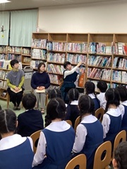 リュート奏者永田斉子さんをお迎えし、ボランティアのお母さま方が、5・6年生に向けてお話会をしてくださいました。演目は、ほるぷ出版のグリム童話『ロバの王子』です。2年に1度高学年に行っています。