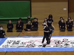 学習発表会 児童鑑賞会 2026年2月18日 / カリタス小学校 6年1組「書道パフォーダンス」 ダンスと書道パフォーマンスを融合させた総合です。 1年間、一人ひとりそれぞれがんばってきました。 全校児童の手拍子で盛り上がりました。 大きな紙が立ち上がった時には、歓声が聞こえました。