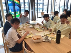 今日の6年生は、ランチルームでの給食。