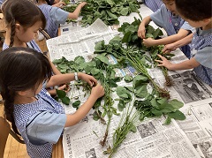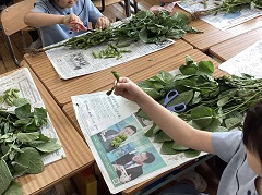 トマトやなす、オクラなどさまざまな夏野菜を育てている夏野菜マスターの2年生が、給食でつかう枝豆(神奈川県小田原市産)のさやとりをしました。とっても小さな赤ちゃん枝豆を見つけたり、面白い形の枝豆を見つけたり、虫を見つけたり…