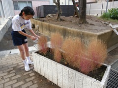 写真は、学校で育てており、鮮やかな紅色を経て、いよいよ収穫を迎える「コキア(ほうき草)」の様子。「種もとったよ」「これってそろそろ収穫していいの?」など、疑問といつも隣り合わせ。ここから、どのような展開になっていくのでしょう?
