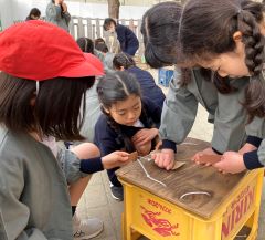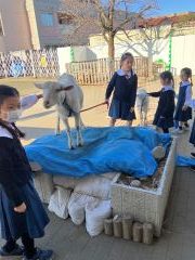 3学期は、『ゆめちゃんランド作り』からのスタートです。ゆめちゃんが楽しく遊んで丈夫に健康に育つように願いを込めて、釘を打ったり、穴を開けたり、やすりをかけたり・・・うまくいかないときもあったけれど、何度も何度もやり直し、完成させることができました。できあがったゆめちゃんランドには1年生の山羊、ゆきちゃんも遊びに来てくれました。