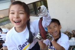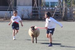一学期末に仔羊のつむぎを迎えた子どもたち。みんなは護るべきいのちとの暮らしを始めました。朝の小屋の掃除、お散歩が毎日あり、目と目を合せて対話を味わい、みんなの想いが生きたことばになって包み込んでいきます。つむぎはすっかりクラスの一員になったのです。いのちとの対話、発意、行動はまだまだあります。残暑が厳しい時期から冬の気配を感じさせるまでの自然を満喫した多摩川探検。枯れてしまったヒマワリの姿との遭遇、サツマイモの収穫、来春の入学式に咲かせたいと願って2年生と植えたチューリップの球根…。どれもこれも周囲のいのちを肌で感じる子どもたちの足跡になりました。