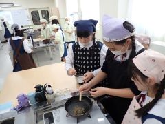 ⑥金平糖も作りました。以前家で作った経験のある子が先生です。火力の調節に苦戦していました。出来上がりの試食大会をしたのですが、同じ材料、同じ作り方をしたのにも関わらず味わいが少しずつ違うことにも驚いていました。