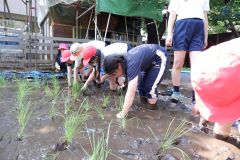 田植えが終わっても、そのままという訳にはいきません。植えた苗が立派に成長できるように守っていかなくてはいけないのです。害虫対策、ボウフラの駆除、水の管理、病気の対策、鳥対策。考えないといけないことはまだまだ山積みです。また夏休みも、田んぼを放置することはできません。交代で当番を作り、水やりや田んぼの手入れを欠かさずおこなっていきます。どのくらい上手く成長してくれるか分からないのも含めて総合の醍醐味。これからみんなのお米がどのように育っていくのか楽しみです。