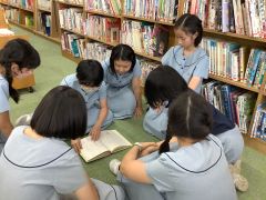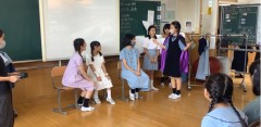 内容、規模、劇で伝えたいことなど何も決まっていませんでしたが、「まずは演じてみたい」という気持ちが強かったので、5グループに分かれて自由に演じてみることにしました。「ヘンゼルとグレーテル」「シンデレラ」「おむすびころりん」「眠り姫」は脚本に忠実に演じましたが、「桃太郎」は脚本をアレンジしました。7月の総合デーで保護者や来校者、他チームに自分たちの演技を見てもらいました。課題が沢山挙げられ、それを「クラス全員で演じる劇に活かしていこう」と2学期に向けての方向性がはっきり決まりました。