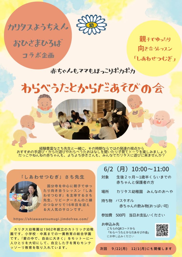 6月2日はベビーマッサージやサイン育児など子育てサロン「しあわせつむぎ」の経験豊富なさち先生とのコラボ企画です