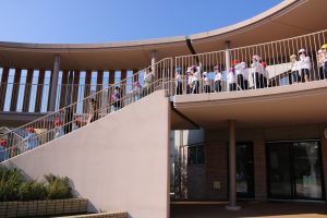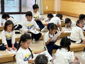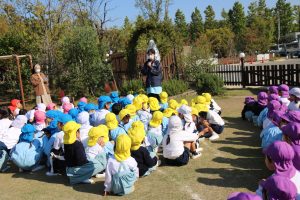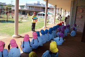 火災を想定した避難の放送を流しましたが、泣く子もいなく落ち着いて避難をすることができました