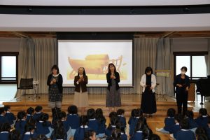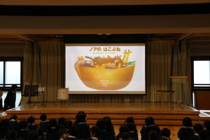 今月のお楽しみは、先生たちによる『ノアのはこぶね』の合奏でした