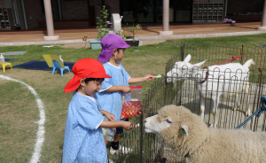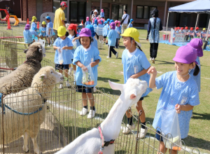 ポニーに乗ったり、ヤギや羊にえさをあげたり、うさぎやヒヨコ、モルモットを抱っこしたり、