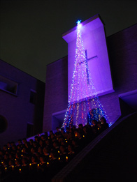 学園聖堂壁面に灯りをともして、キャンドルサービスを行います。
